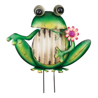 Green Frog With Flower Garden Stake Overstock 33772023